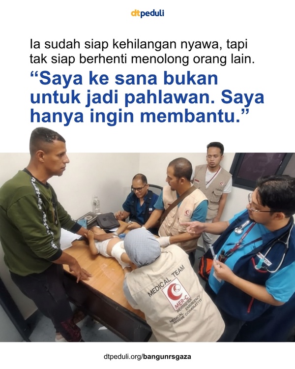 Ia memperjuangkannya di tempat yang setiap detiknya dikejar kematian. Dari tangan lembutnya lahir keberanian. Dari hatinya mengalir kasih untuk para ibu dan bayi Gaza yang hanya ingin selamat hingga menggapai syahid.