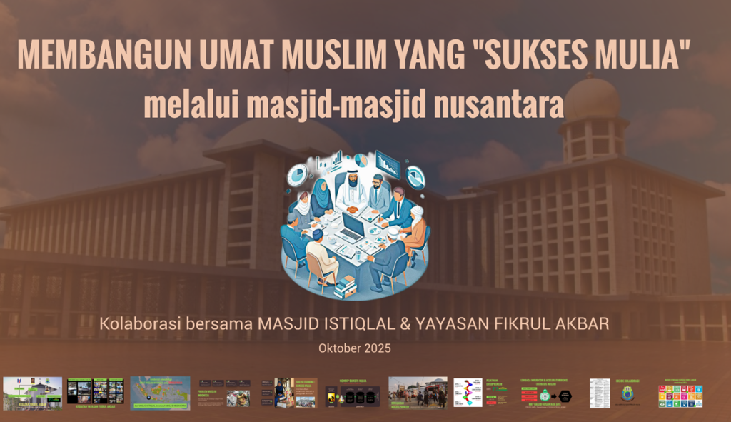 Yayasan Fikrul Akbar kembali berkolaborasi dengan Masjid Istiqlal dalam menyelenggarakan program pelatihan ekonomi umat berbasis masjid pada hari rabu, 15 Oktober 2025 di ruang Amerika Space Masjid Istilal Jakarta. Team dipmpin oleh Ceo Yayasan Fikrul Akbar Dr. Ridwan Haris M.Ed di dampingi ketua Yayasan Fikrul Akbar Drs.Rubaedi Mardiyanto MM dan Direktur Divisi Pelatihan Hery Priambudi ST serta team hj karpet di terima langsung Direktur Utama IGF Mulyono Lodji M.Si dan staf badan pengelola masjid Istiqlal Jakarta.